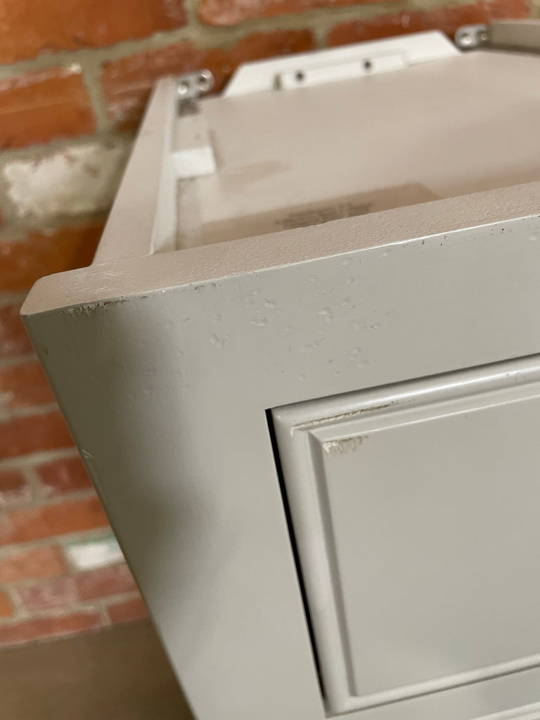 - Multiple scratches and dents to the paintwork across the cabinet