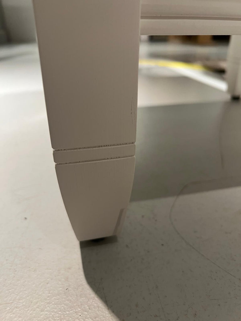 - Scratches, marks, chips, dents, discolouration and imperfections to the painted finish of the frame, legs and wooden top