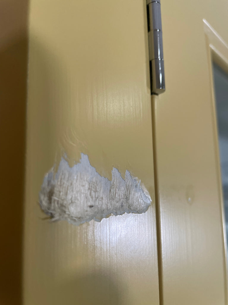 - Large abrasion/dent to the left hand side of the dresser top frame, chipping the paintwork