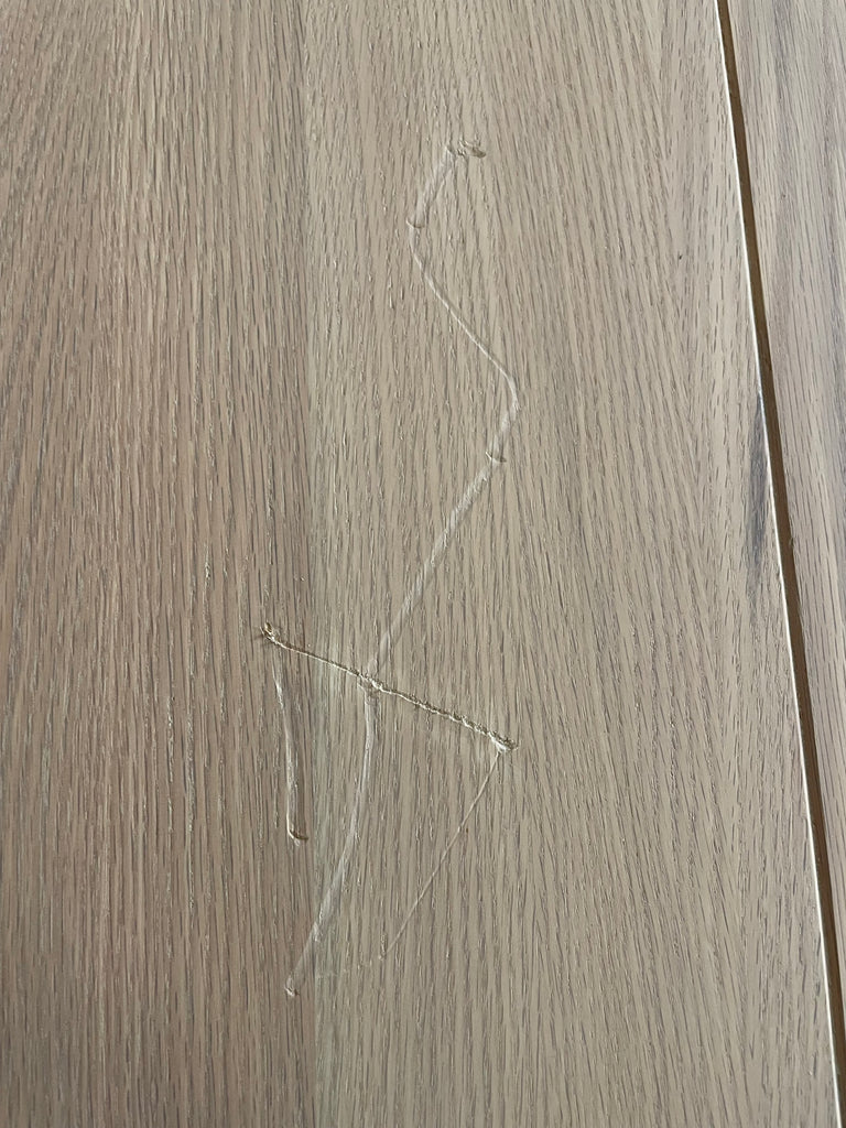 - Dents/gouges to the tabletop finish, with a small dent to one end of the tabletop edge