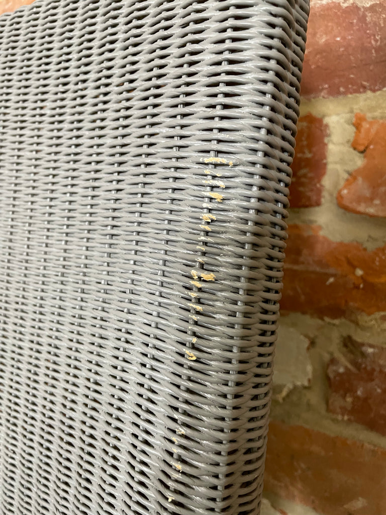 • Multiple scuffs and abrasions to the paintwork across the legs and weave frame, revealing the undercoat