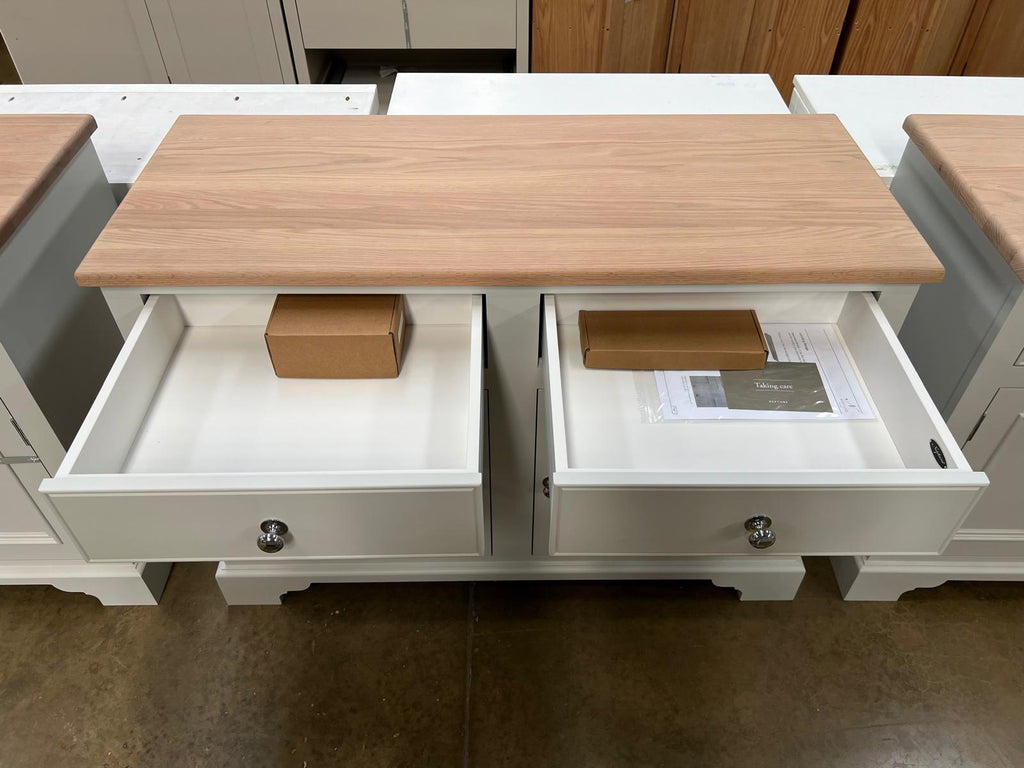 - Few scratches, marks, chips, dents and imperfections to the wooden top and across the painted finish of the sideboard, internally and externally