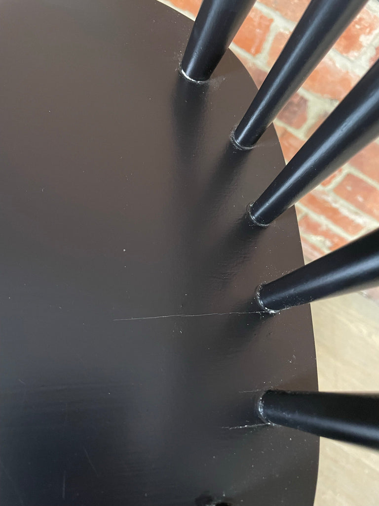 - Scratches, marks, chips, dents and imperfections to the painted finish across the seat, backrest and legs