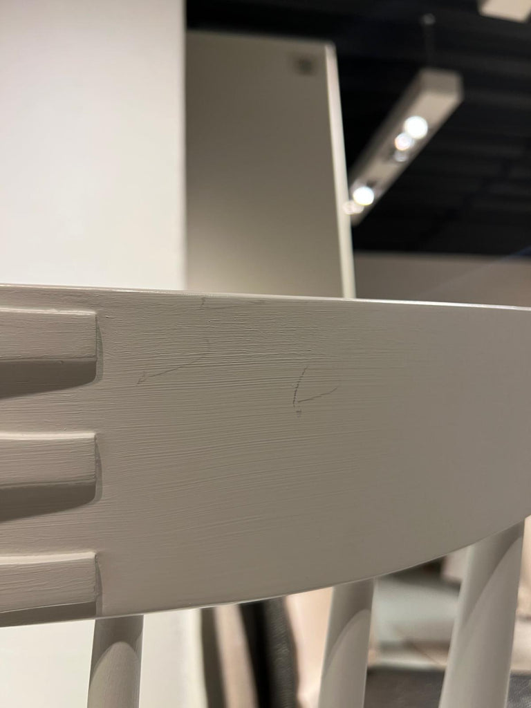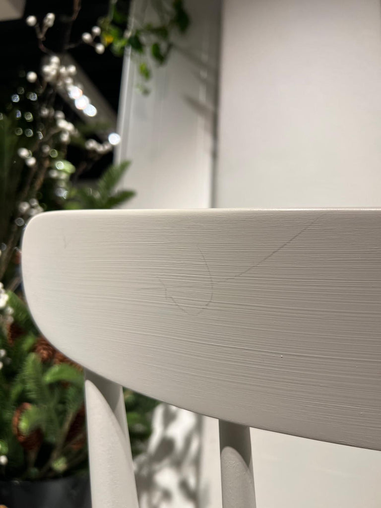 - Light marks and imperfections across the painted backrest