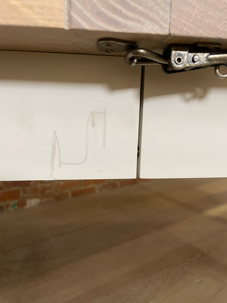 - Multiple marks, dents and scratches to the painted legs and table frame