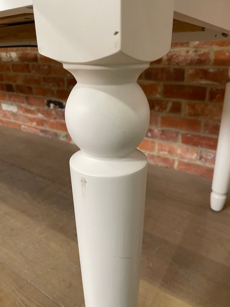 - Scratches, marks, chips, dents, discolouration and imperfections to the painted finish across the legs, frame and wooden tabletop