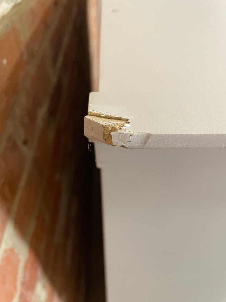 • Multiple dents, chips and splits across the cornice top