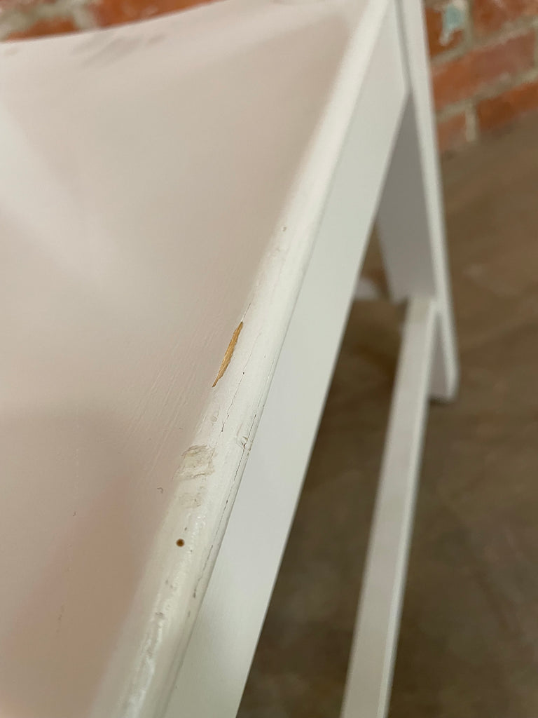 - Scratches, marks, chips, dents and imperfections to the painted finish across the frame, legs and seat