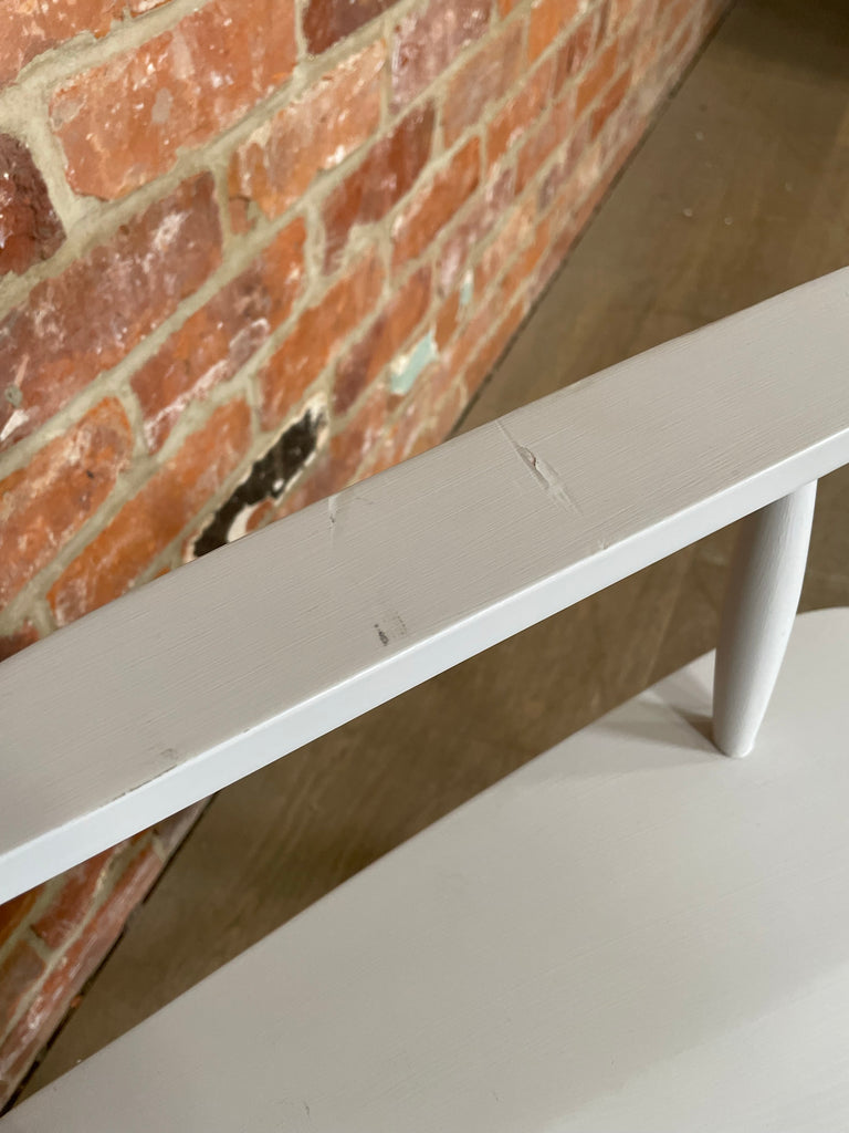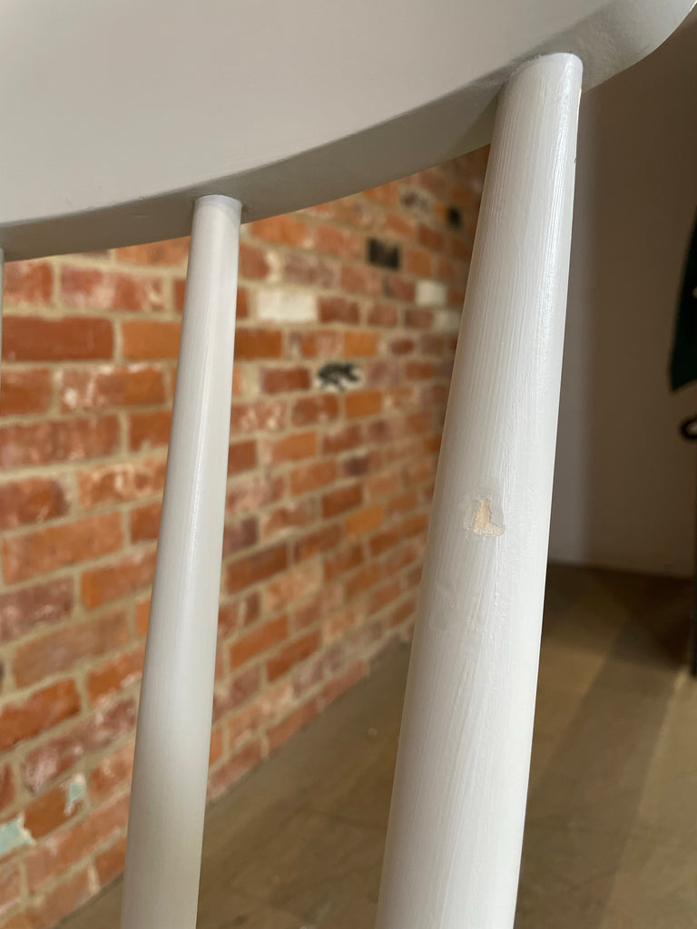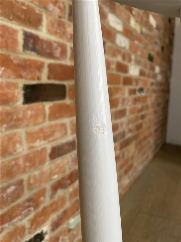 - Scratches, marks, chips, dents, discolouration and imperfections to the painted finish across the frame, legs and seat