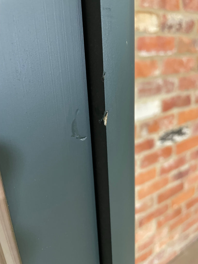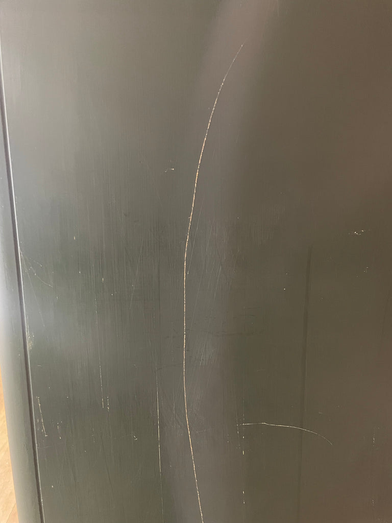 • You may find scratches, marks, chips, dents, discolouration and imperfections across the painted finish of the cabinet frame, and wooden legs & interior