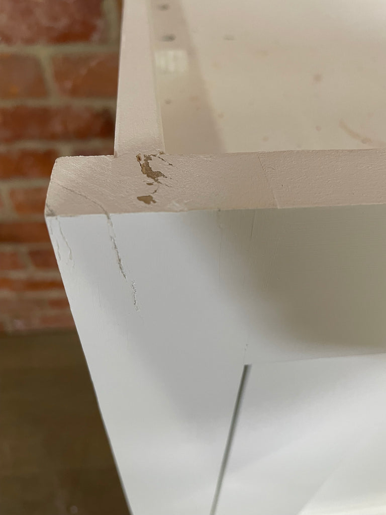 - You may find scratches, marks, chips, dents, discolouration and imperfections across the painted finish of the cabinet