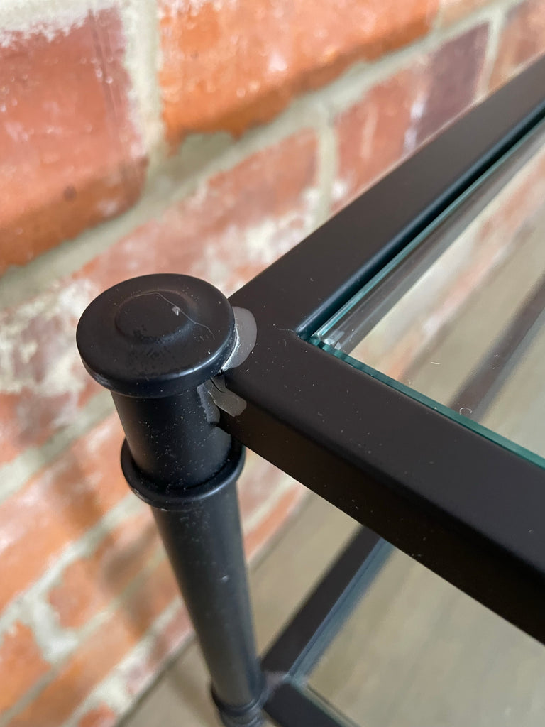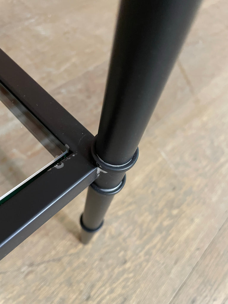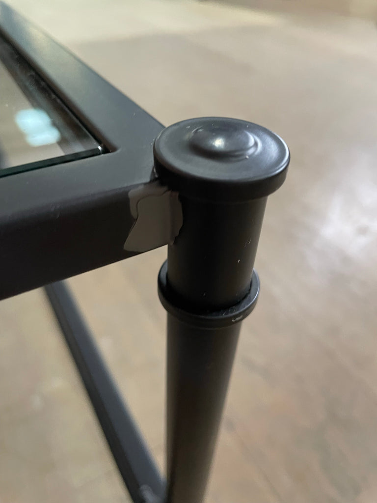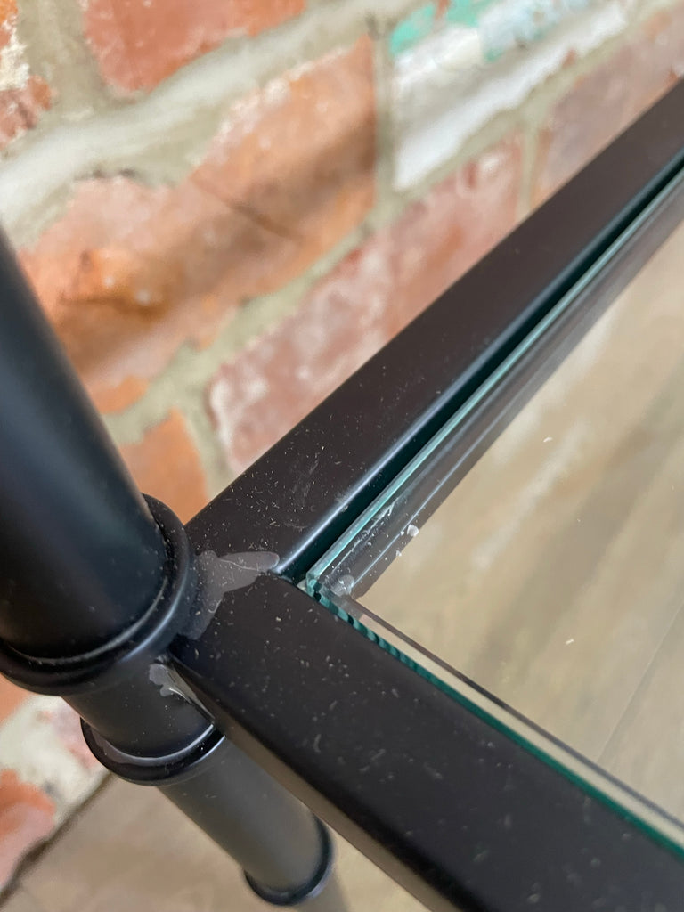 • You may find scratches, marks, chips, dents, discolouration and imperfections across the metal frame finish and glass shelves
