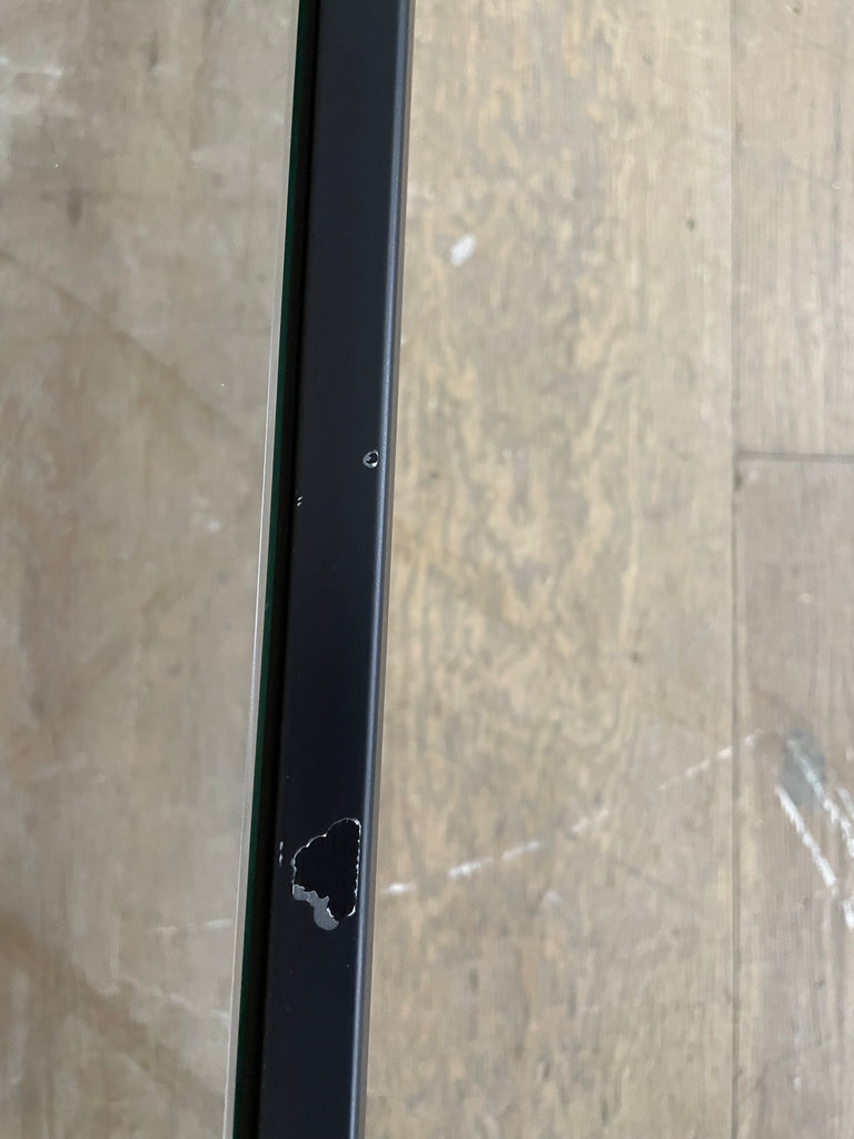 • Multiple chips and scratches to the metal frame finish around all corners and sides of the frame