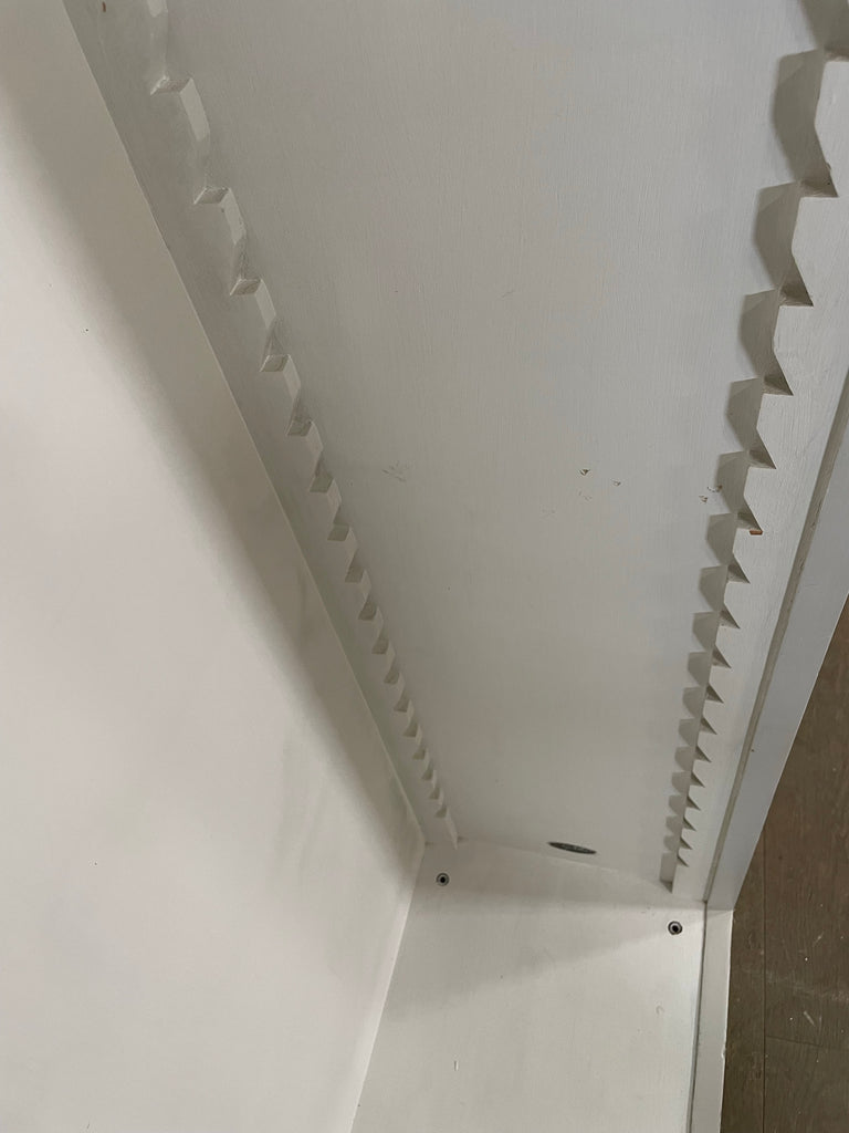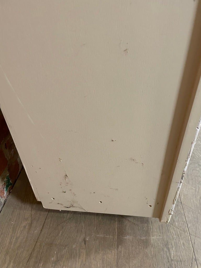 - Signs of a previous instillation with multiple scratches, dents, screw holes and marks to the paintwork across the cabinet