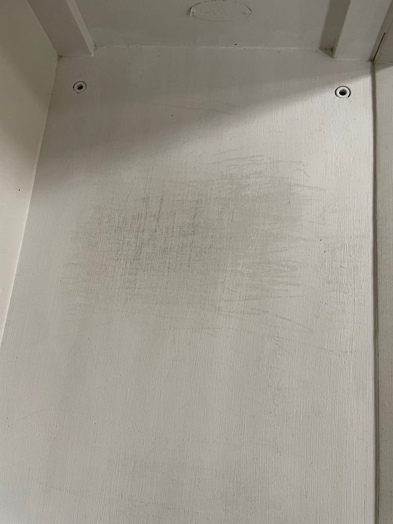 - Signs of a previous instillation with multiple scratches, dents, screw holes and marks to the paintwork across the cabinet