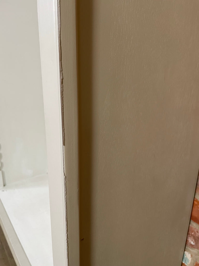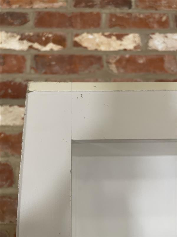 - Discolouration to the painted finish with a mixture of Driftwood & Lead Light on the exterior of the frame and Shell/Silver Birch interior