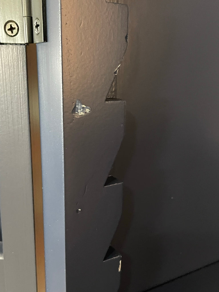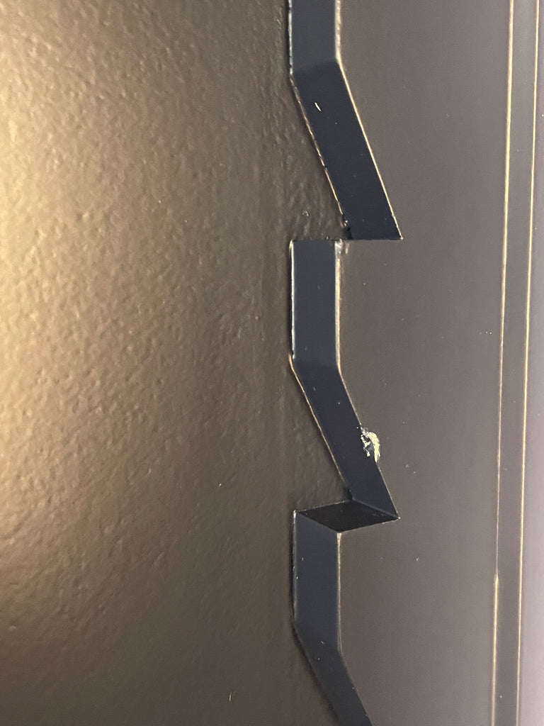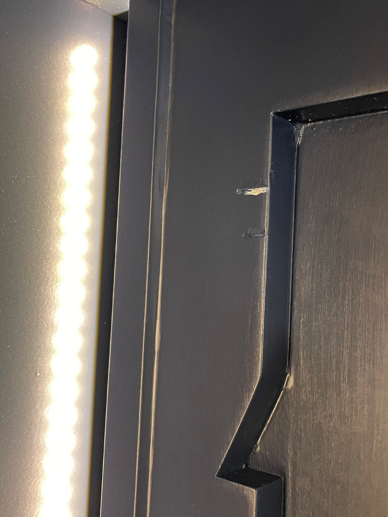- Multiple scratches to the paintwork around the edges of the cabinet, doors and frame, internally & externally