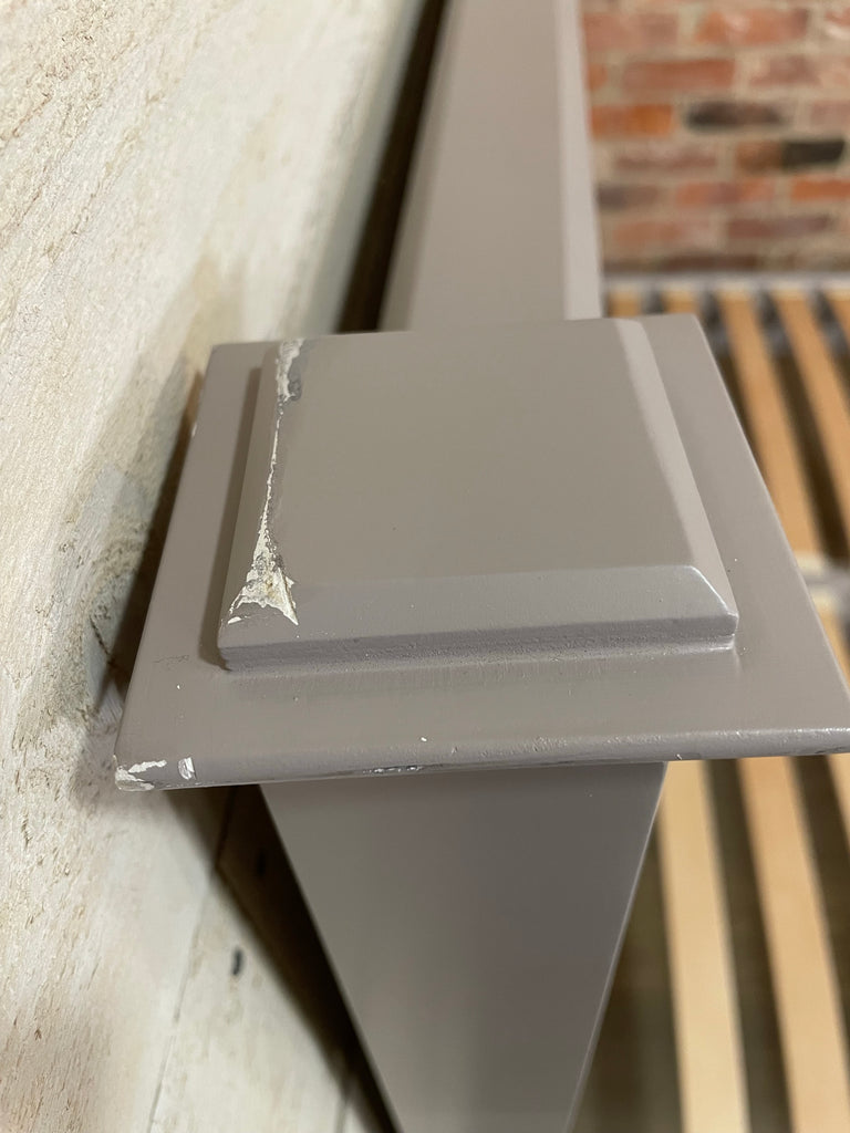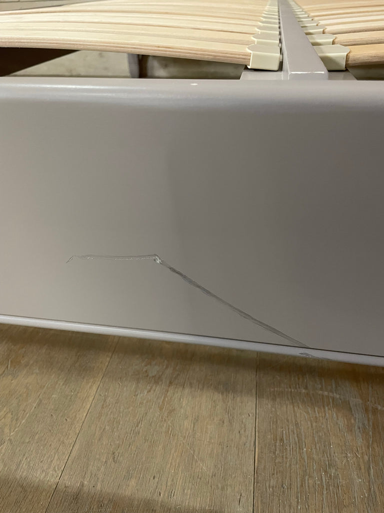 - You may find scratches, marks, chips, dents, discolouration and imperfections across the painted finish of the bed frame, legs and headboard