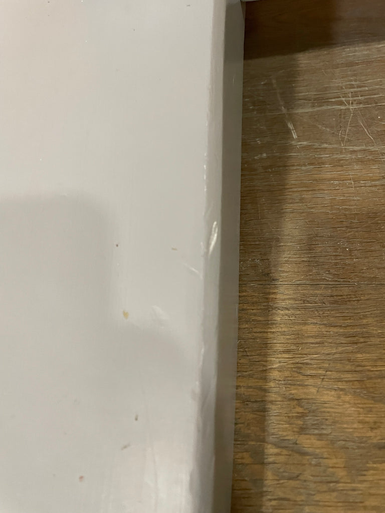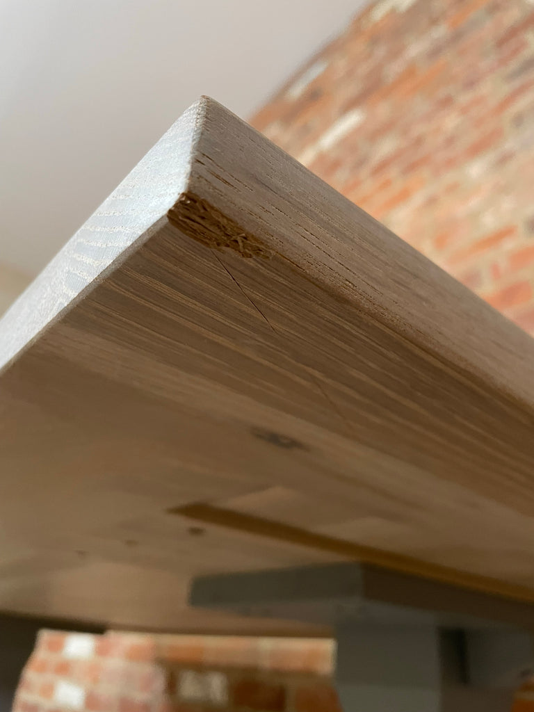 - You may find scratches, marks, chips, dents, discolouration and imperfections across the painted finish of the frame, legs and wooden tabletop